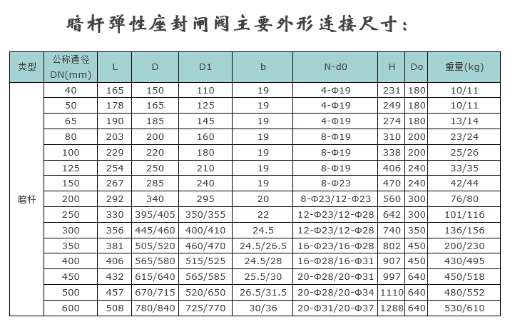 Z45X暗杆弹性座封闸阀主要技术参数